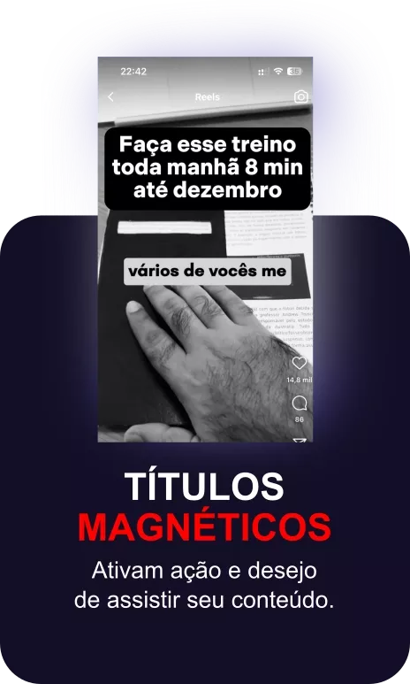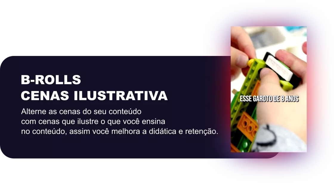 Você pode usar nossa edição para reels e criativos, tanto para conteúdo gravado para ser reels ou para trechos de podcast, aulas, lives... nossa equipe assiste e seleciona os melhores trechos.